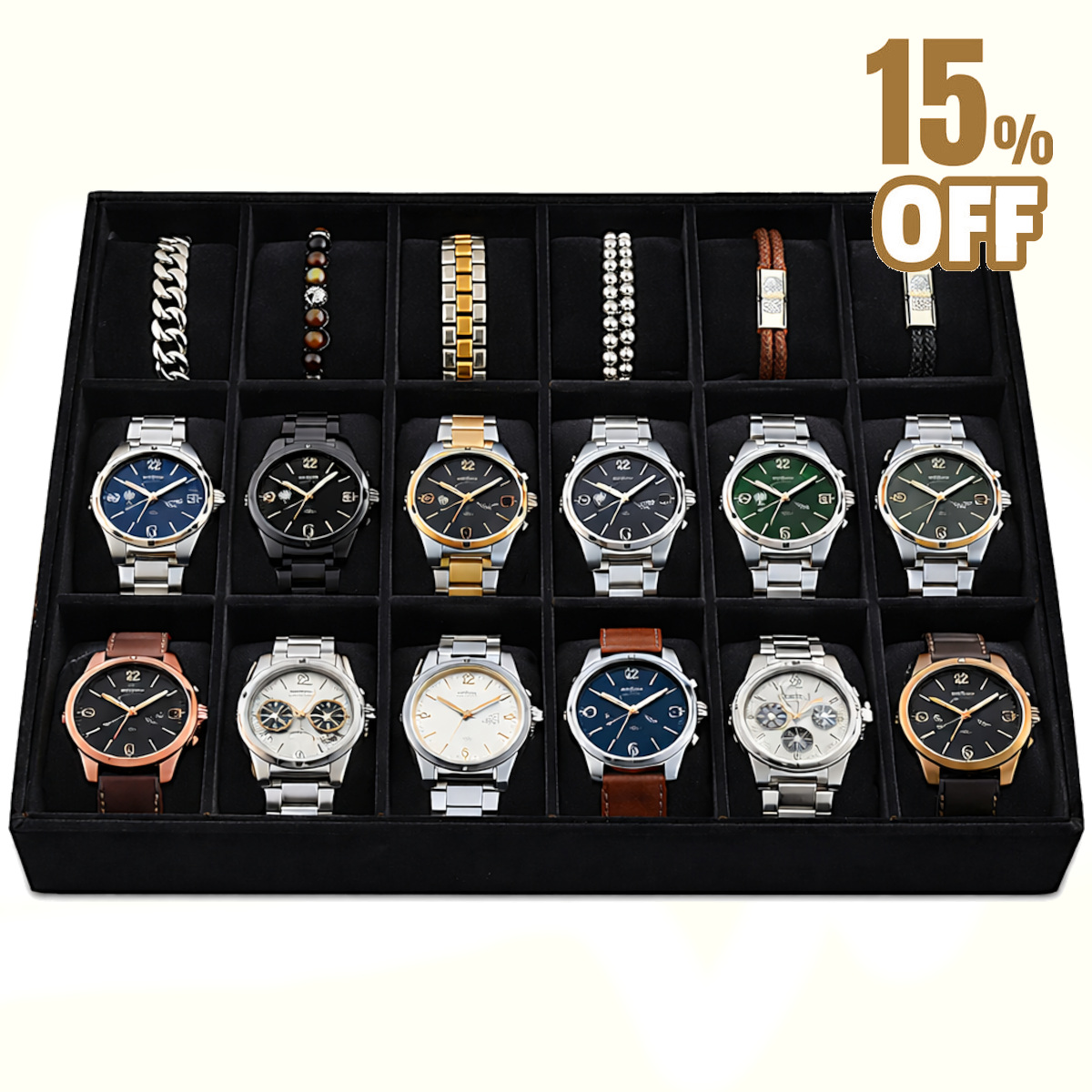 Bandeja Para 18 Relógios Porta Relógio Com 18 Almofadas